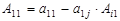 2) два столбца – столбец (например, j=1), по которому происходит замена элементов, и разрешающий столбец j. Заменяют элемент а11 в первой строке на новое его содержание А11: