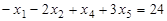означает, что по второму ресурсу мы могли бы изготовить изделий типа С уже не 30, а всего 24. Соответственно, используя только третий тип ресурса, можно изготовить уже 60 изделий типа С. Становится ясно, сколько максимум изделий типа С можно позволить выпустить – это 24 изделия. В противном случае у нас не хватит второго ресурса. Следовательно, надо в план включать изделие С и в количестве не более 24, т.е. выводить из плана базисный вектор Р5 и принадлежащие ему ресурсы передавать изделию С, а это означает: переменная х3 вводится в базис взамен переменной х5, выводимой в свободные. В результате имеем следующий опорный план