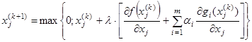 Используя штрафную функцию, последовательно переходят от одной точки к другой до тех пор, пока не получат приемлемое решение. Таковым будет очередной опорный план, который удовлетворит ранее приведенному условию, а именно Процесс итерации осуществляют по рекуррентной формуле: