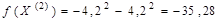 Точность вычислений по функционалу обеспечить не ниже 1%. Р е ш е н и е. Целевая функция представляет собой вогнутый параболоид с вершиной в начале координат, т.е. она имеет отрицательно-определенную квадратичную форму. В то же время область допустимых решений - это геометрическое место точек, ограниченное объемом цилиндра с вертикальной осью симметрии Е, имеющей координаты Линиями уровня будут окружности переменного диаметра, которые являются следами пересечения горизонтальных плоскостей с поверхностью отклика функции цели – параболоидом. На рис.21 они показаны в виде дуг для различных значений функции f. Так как вся функция цели находится в области отрицательных значений, то условию максимума будет отвечать точка первого контакта линии уровня с поверхностью цилиндра функции ограничений. Это должна быть точка D, рис.20. Найдем ее координаты, применив для решения задачи метод штрафных функций. Начнем с выбора первичной точки. Ее следует выбирать в ОДР. Теоретически безошибочно можно было бы взять координаты центра ОДР, т.е. координаты точки Е. Но мы поступим иначе. Выберем начальную точку с координатами