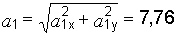В заданный момент времени t = 1с, V1x = 4,68 м/с, V1у = 6,16 м/с Определим проекции ускорения