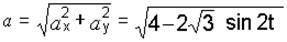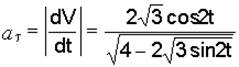 В момент времени t1 = 0,5 p са = 2 м/с2. Зная выражение скорости, как функции времени t (о), определим модуль касательного ускорения точки, м/с2, по формуле (1.5)