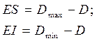 Граничні розміри деталі - два допустимі граничні розміри між якими повинний знаходитися або яким може дорівнювати дійсний розмір придатної деталі (Dmax і dmax найбільші граничні розміри отвору і вала відповідно; Dmin і d min найменші граничні розміри отвору і вала відповідно). Тобто ці розміри допускаються вимогами креслення. Але на кресленнях незручно показувати відразу три розміри (номінальний, найбільший, найменший), тому для спрощення креслень уведеш поняття: верхнє граничне відхилення ES, es; нижнє граничне відхилення ЕІ, еі (отвір і вал відповідно).