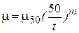 Для значень температури, відмінної від 50 °С, динамічну в'язкість варто підрахувати по формулі