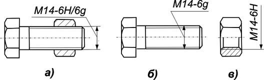 Рисунок 5.5 - Фрагменти креслень, що пояснюють позначення посадок нарізних з'єднань