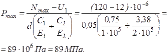 Тоді На підставі теорії найбільших дотичних напружень визначаємо максимально припустимий питомий тиск Ртах, при якому відсутня пластична деформація на контактних поверхнях деталей. У якості Ртах беремо найменше з двох значень Р 1 і Р 2:
