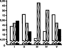 Рис. 7.2. Время появления монотонии у лиц с различными типологическими особенностями проявления свойств нервной системы По вертикали - время, часы, мин; по горизонтали: I - «внешний» баланс (первый столбик -преобладение возбуждения, второй - уравновешенность, третий - преобладание торможения); II -«внутренний» баланс (обозначения столбиков теже); III - первый столбик - подвижность, второй -инертность; IV - подвижность-инертность торможения (обозначения теже); V- сила нервной системы (первый столбик - слабая, второй - средняя, третий - большая) фицированный рабочий этого сделать не может и становится, как писал В. Хакер, жертвой бесстимульного безразличия. Как бы то ни было, но точка зрения С. Уайта не получила подтверждения в исследованиях П. Смита (Smith, 1955) и Г. Бартенверфера (Bartenwerfer, 1957). П. Смит даже установила противоположные соотношения: менее монотоноустойчивыми швеями оказались лица с более низким интеллектом, хотя разница между группами с различным интеллектом была и не достоверной. Влияние профессионального уровня. В некоторых исследованиях отмечается влияние уровня квалификации работников на монотоноустойчивость. Однако и здесь нет единства мнений. Одни авторы связывают эту устойчивость с низким уровнем квалификации работников. В других работах (Рябинина, 1971; Соболев, Степанова, 1975) указывается на большую подверженность монотонности молодых и, как правило, еще неквалифицированных рабочих. Возможно, это связано с тем, что среди молодых еще много лиц с низкой монотоноустойчивостью, которые не успели отсеяться. Влияние рабочей установки. Показательны данные, полученные Н. Е. Высотской и др. (1974): в первые дни недели (понедельник, вторник), когда происходит «враба-тывание», состояние монотонии наступает раньше, чем в середине недели (рис. 7.3). У школьников в воскресенье при выполнении однообразной интеллектуальной работы это состояние наступает значительно раньше, чем в учебные дни недели (Фе-тискин, 1981) Влияние физической тренированности. Н. П. Фетискин (1974а) установил, что у спортсменов с небольшим стажем устойчивость к однообразной физической деятельности выше, чем у спортсменов-новичков. Это можно объяснить возникновением по мере повышения тренированности неспецифической устойчивости к неблагоприятным факторам, неоднократно отмечавшейся физиологами спорта по отношению к радиации, температурным воздействиям, инфекциям и т. п. 7.2., Скука (состоят™ монотонен) 217 Влияние мотивации. В той же работе Н. П. Фетиски-на был обнаружен и другой факт, на первый взгляд противоречащий вышеизложенной закономерности. Оказалось, что у спортсменов с большим стажем устойчивость к монотонии была ниже, чем у спортсменов со стажем до пяти лет. Здесь, однако, надо учесть различия в мотивации тех и других. У спортсменов младших разрядов стремление достичь высот мастерства создает и повышенный мотив, в результате чего они тренируются увлеченно, с азартом, о чем свидетельствует и то, что они замечают монотонию только когда устают. У спортсменов с большим стажем на фоне высокой тренированности мотивация к тренировочной деятельности снижена (проявление психического, или эмоционального, «выгорания»), в результате чего на многие тренировочные занятия они идут с неохотой, в силу необходимости. Жалобы на монотонию у них появляются задолго до появления устало