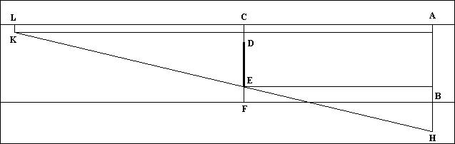 Расстояния CD и EF равны. Т.е. фура едет по середине полосы. Водитель легкового автомобиля едет вдоль осевой линии. Расстояние его глаза от осевой в 1 м означает, что левый борт его автомобиля – на осевой линии. Расчет, каково минимальное расстояние от глаз водителя до заднего борта фуры, когда он может увидеть знак, сводится к решению простейшей пропорции: