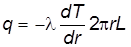 Рис. 2 Температуры слоев газа, прилегающих к поверхностям, равны температурам соответствующих поверхностей. Выделим внутри газа кольцевой слой радиусом
