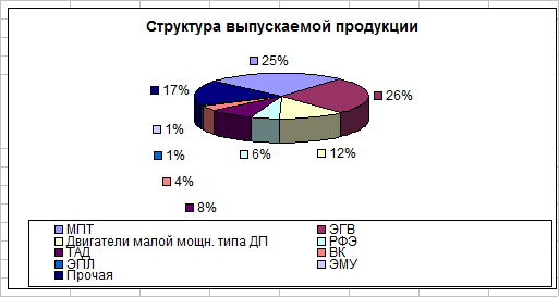 Рис. 1. Структура продукции, выпускаемой ОАО «ПЭМЗ».