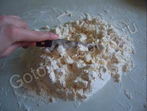 Состав творог - 200 г, Приготовление Муку смешать с разрыхлителем и просеять.