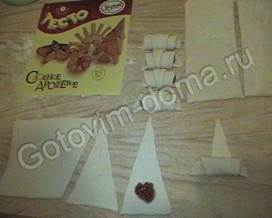Приготовление Покупное слоеное тесто разморозить и отделить пластины теста друг от друга.