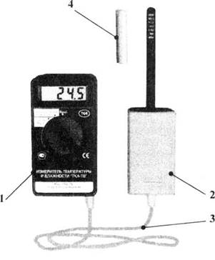 1. Снимите защитный колпачок 4 с зонда (рис). Поместите прибор в зону измерений. При резком изменении температуры и влажности окружающего воздуха необходимо выдержать прибор во времени для установления тепло-влажностного равновесия между зондами и окружающей средой. 2. Поворотом переключателя выберите нужный параметр. Считайте с дисплея измеренноезначение. При выходе за пределы диапазона измерения относительной влажности (>100%) на дисплее появляется символ «HV». 3. По окончании измерений выключите прибор и наденьте на зонд защитный колпачок. Внимание! Не допускается попадания капель влаги в измерительную полость зонда, не допускается погружать зонд в жидкость.