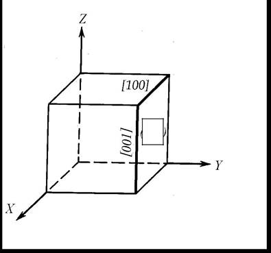 кристалла: [100] – оси Х и [001] – оси Z,можно рассчитать символ грани(hkl), в плоскости которой они располагаются.