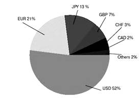 Залежно від організації торгівлі валютою валютний ринок поділяється на біржовий та позабіржовий. На біржовому ринку торгівля валютою здійснюється організовано на спеціальному місці, що називається валютна біржа21. Організатори біржі за свої послуги отримують великі доходи у формі комісійних. Тому цей вид торгівлі все більше поступається місцем позабіржовій валютній торгівлі. Тут продавці і покупці вступають у прямі зв’язки між собою. В Україні міжбанківська валютна біржа перестала існувати з 2000 р. Тепер торгівля валютою здійснюється через міжбанківський валютний ринок. До головних функцій валютних ринків можна віднести: забезпечення виконання міжнародних розрахунків; забезпечення ефективного функціонування світових кредитних та фінансових ринків (дозволяє суб’єктам МЕВ користуватися національними кредитними та фінансовими ринками для фінансування та проведення операцій по всьому світу. Тобто фірми мають змогу отримувати кредити за найнижчими ставками і у найпривабливішій для них валюті, а потім використовувати залучені кошти для фінансування будь-яких операцій); страхування валютних та кредитних ризиків (валютні ринки надають можливість суб’єктам МЕВ за допомогою відповідних інструментів (опціони, ф’ючерси, форвардні контракти, валютні свопи) зменшити або зовсім уникнути валютних ризиків які пов’язані з проведенням операцій в різних валютах); отримання спекулятивного прибутку учасниками ринку у вигляді різниці курсів валют (спекулянт відкриває позицію по певній валюті і очікує зміни курсу, якщо курс змінився таким чином яким очікував спекулянт то він заробить прибуток якщо, ні то збиток); визначення валютних курсів – діяльність операторів на валютних ринках постійно змінює валютні курси тих валют, з якими працюють на цьому ринку. Існує багато причин зміни валютного курсу певної валюти, але всі вони діють опосередковано через зміну попиту і пропозиції на цю валюту на валютних ринках. Таким чином саме на валютному ринку визначається вартість певної валюти; диверсифiкацiя валютних резервів банків, підприємств, держав (суб’єкти МЕВ можуть певним чином застрахувати себе від змін валютних курсів шляхом розосередження своїх грошових активів в різних валютах); регулювання економіки (через зміну валютного курсу відкрита економіка може регулювати диспропорції які виникають в ній). Існує чотири групи суб’єктів валютного ринку: 1. Державні установи, основне місце серед яких займають: центральні банки - управління валютними резервами, проведення валютних інтервенцій, регулювання рівня процентних ставок по вкладенням в національній валюті; казначейства окремих країн. 2. Юридичні та фізичні особи, зайняті у різноманітних сферах зовнішньоекономічної діяльності: компанії, що приймають участь у міжнародній торгівлі; мають попит на іноземну валюту, а також її пропонують; операції здійснюють через банки; компанії, які здійснюють закордонні вкладення активів (Investment Funds, Mohey Market Funds, International Corporations), тобто інвестиційні фонди, крупні міжнародні корпорації; приватні особи – неторгові операції - туризм, переказ заробітної плати, пенсій, гонорарів і продаж готівкової валюти. 3. Комерційні банківські установи, які забезпечують валютне обслуговування зовнішніх зв’язків: комерційні банки (ТНБ) – проводять основний обс