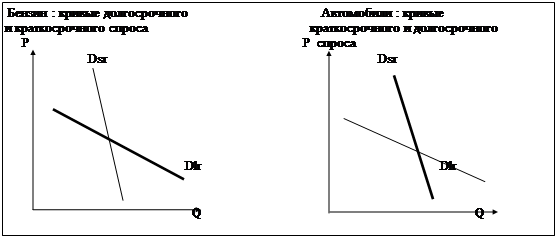 Ei= Для большинства товаров этот коэффициент будет иметь положительное значение (для товаров высшей категории). Значение коэффициента будет значительно варьироваться от товара к товару. Отрицательное значение коэффициента эластичности спроса по доходу свидетельствует о товаре низшей категории. Практическое значение коэффициента эластичности по доходу заключается в облегчении прогнозирования того, какие именно отрасли имеют шанс на процветание и расширение, а какие в будущем ожидает застой и сокращение производства. Высокая положительная эластичность по доходу означает, что вклад конкретной отрасли в экономический рост будет больше, чем ее доля в структуре экономики. Небольшой положительный или отрицательный коэффициент указывает на перспективу сокращения производства в отрасли. При анализе спроса и предложения важно выделять продолжительность периода времени. Другими словами, необходимо определить период времени, через который мы будем определять изменения. При промежутке менее года — краткосрочный период. В целом кривые спроса и предложения за короткий промежуток времени выглядят совершенно иначе, чем за долговременный. Для многих товаров спрос более эластичен от цены для длительного, а не для короткого. Это обусловлено тем, что изменение потребительских привычек требует времени, а также тем, что спрос на один товар может быть связан с запасом другого товара у потребителей, который изменяется медленнее. Пример: Резкое повышение цен на бензин, уменьшает количество его продаж в краткосрочном периоде, но это влияет на спрос на автомобили, который может изменяться только в долгосрочном периоде.