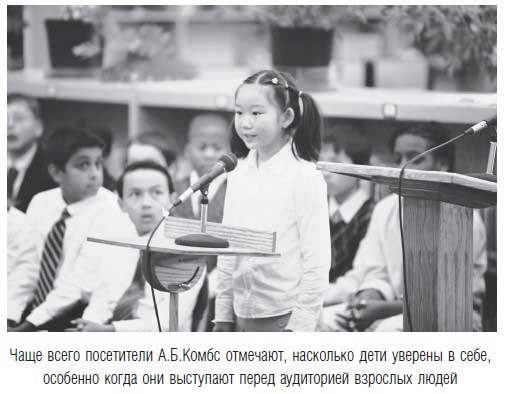 Миссис Пател. Наша старшая дочь в детском саду и первом классе ходила в частную школу. Она способная девочка, но очень застенчивая. В классе она всегда сидела на задней парте и позволяла другим быть на переднем плане. Но теперь все иначе! В А.Б.Комбс ей предоставили много возможностей, дали раскрыться. Здесь ей поручают лидерскую роль так же, как и всем другим ученикам. Она приветствует приходящих в школу гостей – она лидер по приветствованию. Всё это помогло ей «вылезти из своей раковины». Мистер Пател. 7 Навыков – это модель, показывающая вам, как взять всё в свои руки, организовать свою жизнь. Этим‑то они мне и нравятся. Это не какая‑то научно‑академическая вещь – это вещь для каждодневной жизни. Знание этих принципов даст ученикам возможность добиться успеха во всех аспектах жизни. Миссис Пател. Лейтмотив лидерства позволяет детям участвовать во многих общественно полезных делах – и даже руководить ими. 7 Навыков – это руководство для жизни, а не просто заданная домашняя работа. Даже поссорившись, они внезапно замолкают, задумываются и говорят: «Давай успокоимся и поищем решение в духе „Выиграл‑Выиграл“». Я слышала эти слова много раз. Теперь дети сами решают свои проблемы. Мне не приходится вмешиваться.
