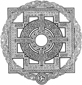 Обозначалась так не только планетарная Ось, но и точка Альва – мистическое Средоточие Планеты. Теперь немногие знают смысл этого начертания, хотя оно известно специалистам‑историкам, изучающим глифику, как древнейшее. Отдельные видоизменения его сохранились до наших дней. Кельтский крест: