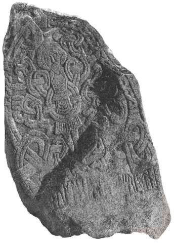 Большой руническим камень из Джеллинга, установленный Харальдом Синезубым, крестившим датчан. Здесь Христос напоминает скандинавского героя в змеином рву.