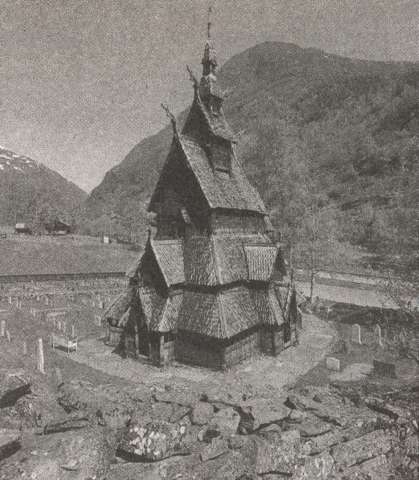 Одна из древнейших норвежских церквей в Боргунде, провинция Согн. Вторая половина XII века. Ученые предполагают, что сходную архитектуру имели языческие храмы.