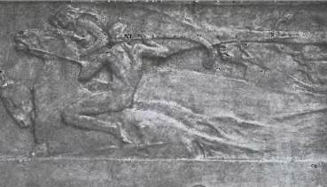 Эсайас Тегнер. Сага о Фритьофе. Перевод со шведского Б. Айхенвальда и А. Смирницкого В то время, пока шло строительство храма, конунг Хельге отправился с войском на финнов в горы. Однажды войско его проходило мимо скалы, на которой стоял храм неизвестного им бога. Хельге полез на скалу, чтобы низвергнуть полуразрушенный храм. Дверь была замкнута и не поддавалась, и Хельге в ярости тряс гнилые косяки. Вдруг над его головой появился бог, чей вечный сон был так грубо потревожен. Он бросился на осмелившегося нарушить его покой воина, и Хельге бездыханным упал на каменный пол. Когда храм был освящен в честь Бальдра, Фритьоф приблизился к алтарю, ожидая обещанную ему невесту. Однако первым порог переступил Хальвдан, он был в страхе и ожидал наказания. Увидев это, Фритьоф отстегнул свой меч и пошел навстречу Хальвдану, протягивая ему руку. Король, густо покраснев, пожал протянутую руку. Затем появилась Ингеборг, и дружба надолго разлученных воинов была скреплена рукой невесты, которую Хальвдан вложил в руку своего названого брата.