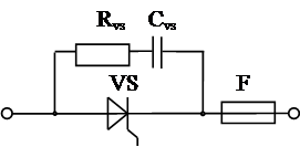 Процеси, що відбуваються у вентильних перетворювачах, часто супроводжуються перенапругами, які, впливаючи на вентилі, можуть призвести до їхнього пробою, що спричиняє коротке замикання. Основним видом перенапруг є комутаційні схемні перенапруги, що спричиняються періодичним переходом вентилів із закритого стану у відкритий, і навпаки. Для захисту від комутаційних перенапруг застосовуються RC-ланцюжок, який вмикається паралельно тиристорам (рис. 5). Для схем з напругою менше ніж 1000 В рекомендуються такі параметри: Rvs=50 - 200 Ом, Сvs = 0,2 - 1 мкФ.