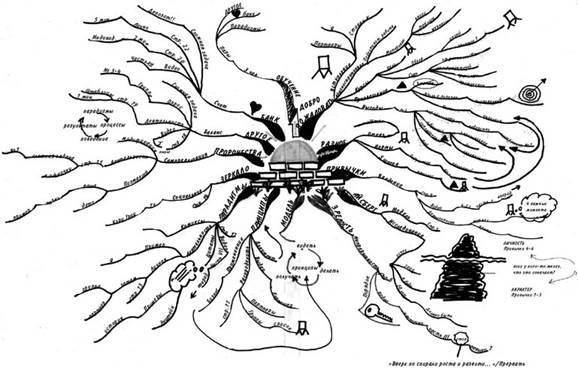 Был поздний августовский вечер, пятница 1996 года. Я была измотана непрерывными поездками на протяжении месяца, во время которых проводила семинары по лидерству для менеджеров и руководителей компании, в которой работала. На тот момент я работала на EDS – крупную компанию, занимающуюся информационными технологиями. Я была одной из восьми тщательно отобранных кандидатов, приглашенных в команду, которая развивала лидерские способности сотрудников, работающих на Среднем Западе и в Канаде. В понедельник предстояла очередная поездка. Это был мой первый опыт обучения новому курсу, и я столкнулась с проблемой, к которой не была готова. Предстояли тяжелые выходные. За несколько месяцев до этого я получила сертификат фасилитатора[3]пятидневного семинара Стивена Кови «Семь навыков высокоэффективных людей». И пока мне не представлялась возможность вести группу. Поэтому меня беспокоил некоторый «туман» в моих знаниях, потому что прошло много времени с момента получения сертификата. Освежить в памяти материал означало практически то же самое, что выучить его заново. Реально оценивая ситуацию, я понимала, что для этого мне нужна как минимум неделя. Если вы хоть раз видели одно из руководств фасилитатора, вы меня поймете. Это увесистая книга толщиной в 7,5 см (я нарочно измерила свой учебник, чтобы быть уверенной, что не преувеличиваю!) с многочисленными видеоматериалами в придачу. Мы вместе с одной из коллег должны были провести два тренинга для двух различных групп в Индианаполисе, штат Индиана, начиная с понедельника. По графику работы мы должны были пробыть там две недели. В понедельник мы проводим первое занятие для группы А, во вторник – первое занятие для группы Б и т. д., пока тренинги не будут полностью пройдены обеими группами. Для опытного фасилитатора умение притворяться может быть весьма полезным в самых разнообразных ситуациях, но только не при демонстрации степени понимания материала. Не знаю, чем это было вызвано – чувством самосохранения или желанием спасти хотя бы часть моих выходных, но решение пришло довольно быстро. На протяжении четырех лет я использовала ментальные карты (mind maps® – зарегистрированная торговая марка Всемирной сети центров Бьюзена) и обучала людей их составлению. (Картирование идей основывается на методе ментальных карт.) Ментальные карты – это способ записывать или организовывать мысли в виде ключевых слов и изображений, позволяющий уместить большой объем информации на одном листе бумаги. Он работает и как мнемотехнический прием. Я знала, что это мощный способ, но никогда прежде не находила ему такого широкого (и весьма важного) применения. Я была загнана в угол, и у меня не было выбора. Это должно было сработать. Вот план, который мы разработали с моей коллегой. Поскольку она значительно лучше меня знакома с материалом, который мы должны были подать, то проводит первое занятие для группы А. Я сижу за последним столом и в течение всего дня составляю карту на одном листе бумаги формата А3. На следующий день я провожу первое занятие с группой Б с помощью своей карты. Если метод срабатывает, мы повторяем эту стратегию все оставшееся в Индианаполисе время. Она согласилась попробовать. В целом я хорошо провела выходные. Но, несмотря на достаточно большую уверенность в том, что план сработает, я все же чувство