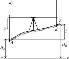 Превышения вычисляют по формулам: h 1 = a 1- b 1; h 2 = a 2- b 2; h 3 = a 3- b 3; Превышение между конечными точками хода А и В равно сумме вычисленных превышений hAB = h 1 + h 2 + h 3, а высота точки В определится по формуле (1). Date: 2015-09-19; view: 483; Нарушение авторских прав |