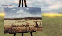 Картина выставлена неподалеку от поля. на дальнем плане дубы.