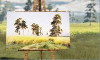 На идею создания мультимедиа программы "Богатырь русского леса" натолкнула, конечно, не физика, а визуальная составляющая процесса обучения. Чтобы доходчивее объяснить предмет современным школьникам, имеет смысл его визуализировать с помощью мультимедиа технологий. И тут мне в голову забрела мысль: почему бы не визуализировать мир художника в трехмерной графике? Я решил сделать трехмерное виртуальное пространство русского леса. Дать пользователю свободу перемещения и разместить там произведения живописи, которые будут служить окошком в мир картин. Такого, по-моему, еще никто не делал.