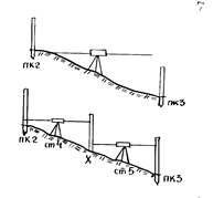 В рассматриваемом примере ПК 2 и ПК 3 нельзя было пронивелировать с одной станции «из середины», так как превышение между ними больше длины рейки (рис. 12). ^ Вычисление превышений между связующими точками (пикетными и иксовыми). Так как пикетные точки нивелировались по способу «из средины», то превышение между ними вычисляют по формуле: Расхождение в полученных превышениях, определяемых по черной и красной сторонам реек, допускается не более 5 мм.