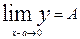 Предел Функция y = f(x) имеет пределом число А при стремлении х к а, если для каждого числа е>0 найдется такое число δ>0, что | y— A|<е, при | х —a|<δ