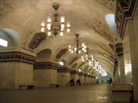 Станции Московского метрополитена — дворцы Москвы, отличаются поистине дворцовым великолепием подземных залов. Подземные комплексы украшены статуями, скульптурами и рельефами, монументально-декоративными композициями (живопись, мозаика, витражи и роспись) выдающихся художников страны. Станции «Маяковская», «Площадь Революции» с 76 бронзовыми скульптурами М. Г. Манизера, «Кропоткинская», «Комсомольская-кольцевая» с мозаиками П. Д. Корина, «Новослободская» и другие принадлежат к числу интереснейших памятников архитектуры 1930—1950-х гг. Некоторые из них официально находятся под охраной государства. Новые станции метро отличаются простотой и строгостью оформления. Немного истории Первая линия открылась 15 мая 1935 года и шла от станции «Сокольники» до станции «Парк культуры», с ответвлением на «Смоленскую». Метрополитен первоначально носил имя Л. М. Кагановича. С 1955 года метрополитену присвоено имя В. И. Ленина. Сама транспортная система с 1992 года преимущественно именуется как Московский метрополитен. Осенью 1941 года метро использовалось как бомбоубежище, часть вагонов была эвакуирована. Постановление Государственного комитета обороны от 15 октября 1941 года предполагало уничтожение оборудования метро в случае появления войск противника «у ворот Москвы». Потолок жёлтого цвета также украшен мозаичными вставками и лепниной. Зал освещён массивными многорожковыми люстрами, висящими между панно, платформы освещаются люстрами меньшего размера. Колонны украшены мраморными капителями и отделаны светлым мрамором, как и стены станции. Пол выложен розовым гранитом. Наземный вестибюль станции между зданиями Ленинградского и Ярославского вокзалов украшен барельефами Г. И. Мотовилова. Ст. м. «Курская»
