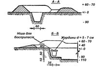 Окоп складається з площі для встановлення гранатомета, ровика для розміщення обслуги, ніші для боєприпасів та бруствера. До окопу передбачено примикання ходу сполучення. Шляхом переставлення гранатомета з однієї площадки на іншу можна розширювати сектор стрільби до 100 – 120о. Прийняте заглиблення (90 см) забезпечує стрільбу з гранатомета з положення стоячи. Форми та розміри окопу дозволяють розміщати гранатомет в зібраному вигляді на дні окопу. При будові окопів у слабких грунтах необхідно передбачити обкладення крутостей площин для встановлення гранатомета з жердин діаметром 5 – 7 см. Об’єм робіт та витрата матеріалів на будову окопів з однією чи двома площами наведені у такій таблиці.