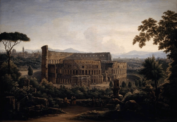 Классицизм стремился подчинить себе все виды живописи, превратить их по сути дела в исторический жанр. Так сложился «героический» и «исторический» пейзаж. Выдающимся мастером таких ландшафтов был Ф. Матвеев (1758-1826). После окончания Петербургской Академии художеств он поехал совершенствовать свое мастерство в Италию, где оставался до самой смерти. В России Матвеев стал известен как мастер многочисленных итальянских видов, среди которых одним из лучших является «Вид Рима. Колизей» (1816, ГТГ). Следуя эстетике классицизма, Матвеев выбрал исторически важное и значительное место в «вечном городе».
