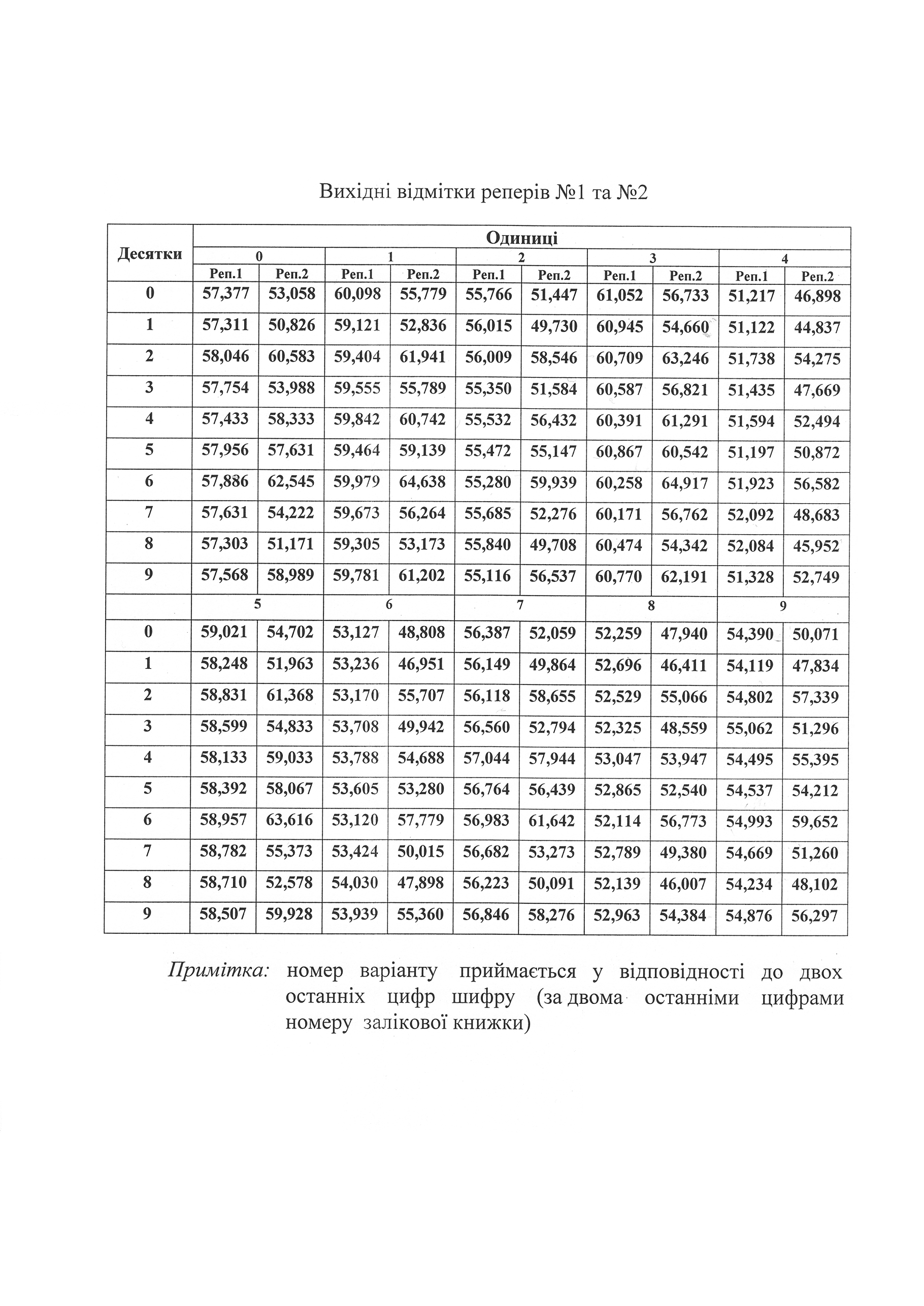 Завдання: - обробити польовий журнал технічного нівелювання згідно варіанту за двома останніми цифрами шифру (додаток А і Б).