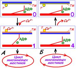 . Рабочий цикл миозиновых мостиков поперечнополосатого миоцита