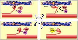 Рис. 709270802. Рабочий цикл миозиновых мостиков поперечнополосатого миоцита.