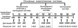 Таблица 210210903 Максимальная мощность и ёмкость трех энергетических систем (примерные величины из расчета на 20 кг активной мышечной массы*)