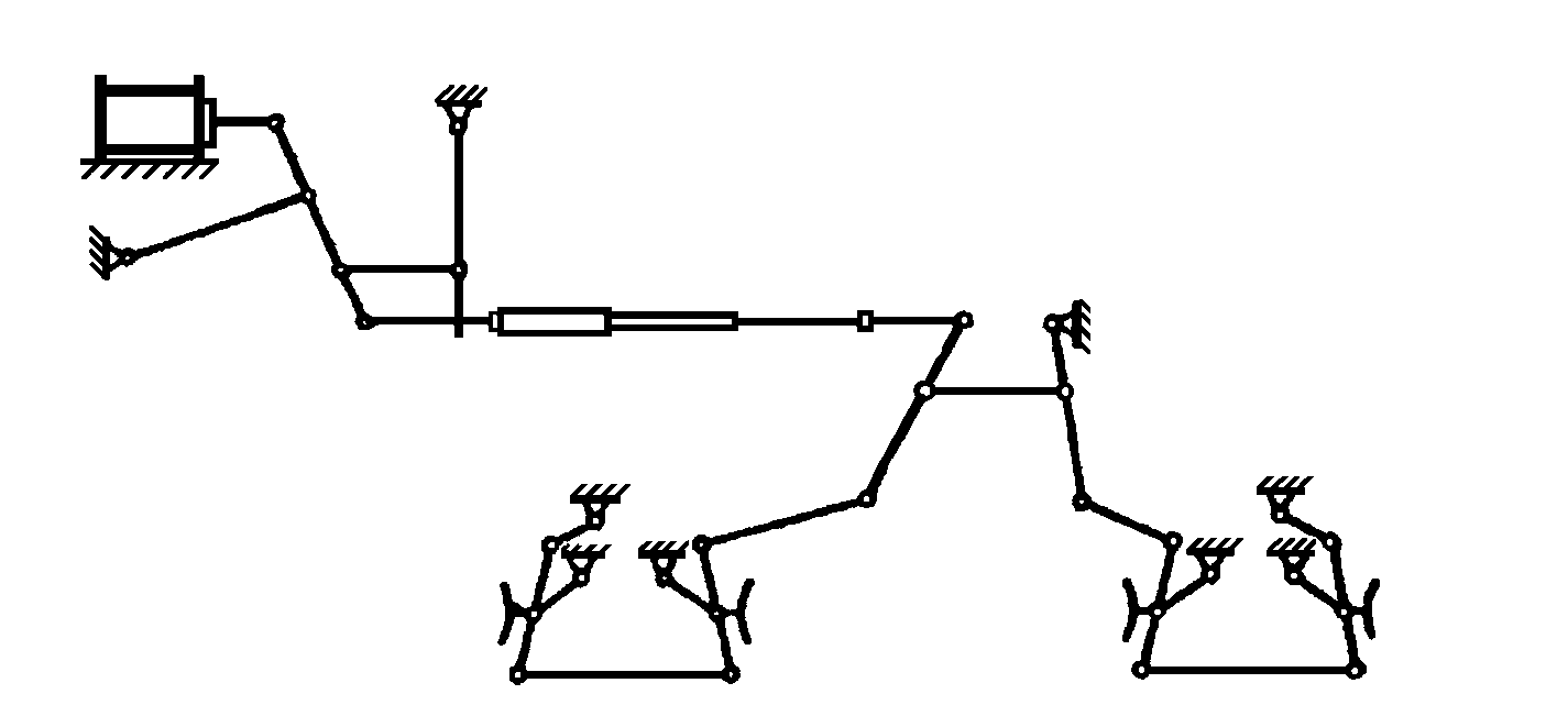 Рисунок А.6 – Схема тормозной рычажной передачи четырехосного вагона с раздельным торможением