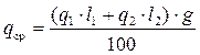 где qср - средний вес диаметром 1 м принятых двухступенчатых штанг диаметром d1 = ___ мм длиной l1 =____ % и штанги с d2 = ___ мм длиной l2 =____ %.