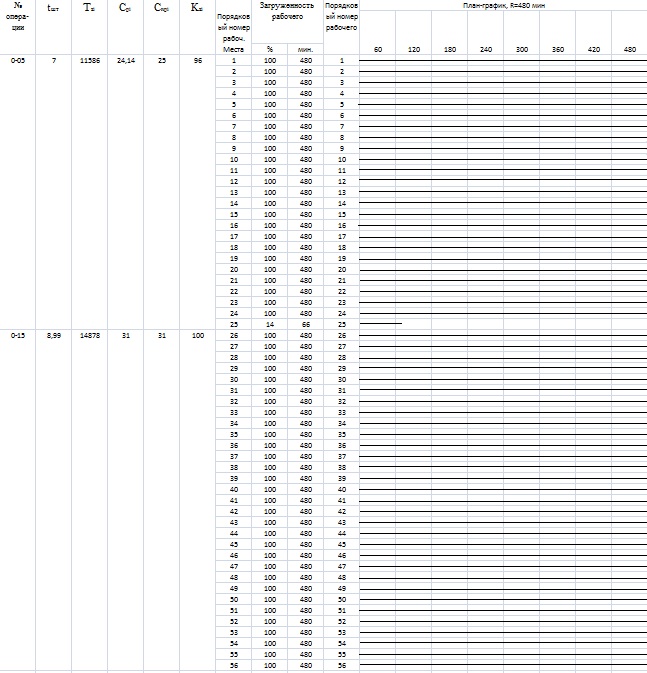 корректируется время Принятое число рабочих мест: Спр005=25, Спр015=31. Коэффициент загрузки: