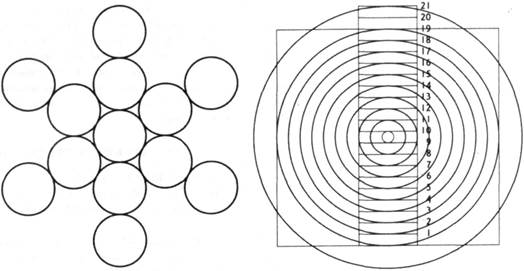 | | Рис. 9-13. Лестница Люси с концентрическими кругами, нарисованными до 19-й ступеньки, а затем - на 21-й