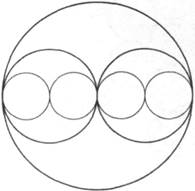 Я хочу показать вам ту же идею геометрически. По Принципиальной основой Цветка Жизни является круг, или сфера (рис. 10-29). А в каждый круг, независимо от его размеров, может поместиться ровно семь меньших кругов вот в таком виде (рис. 10-30). Это вечная истина. Вы это видите в Цветке Жизни, где семь первых кругов спрятаны внутри большего круга. Отношение 7 к 1 является также основой образа Плода Жизни. В Цветке Жизни Плод спрятан так, что когда вы дорисовываете все незаконченные круги по внешнему краю, возникает еще одно внешнее вихревое вращение, ведущее к Плоду Жизни — вовне (см. рис. 6-12).