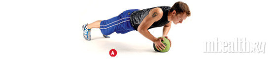Положи на пол достаточно жесткий медбол, который не будет проминаться под весом твоего могучего тела. Прими упор лежа, поставив ноги на пол, а руками упрись в медбол. Из этого положения опустись вниз на половину амплитуды, согнув руки в локтях примерно до прямого угла (А). Задержись в этом положении на максимально возможное время. Выдавив из себя максимум секунд, с чистой совестью отдыхай, ведь на этом подход закончен. Сделай предписанное количество подходов. важно: не прогибайся в пояснице и не задерживай дыхание. Date: 2015-09-19; view: 712; Нарушение авторских прав |