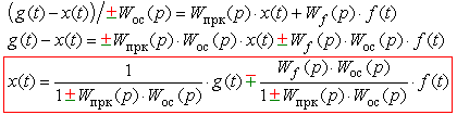 При отсутствии помехи f (t) выходная величина связана с задающим воздействием ПФ замкнутой системы: