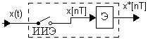 - Задача идеального импульсного элемента (ИИЭ) в модели - сформировать для дальнейшего математического описания системы либо последовательность импульсов типа d-функций с площадью ~ x (t), либо решетчатую функцию, в основе которой единичная импульсная функция do(t) = { 1 при t =0; 0 при t ¹0 } с амплитудой ~ x (t).