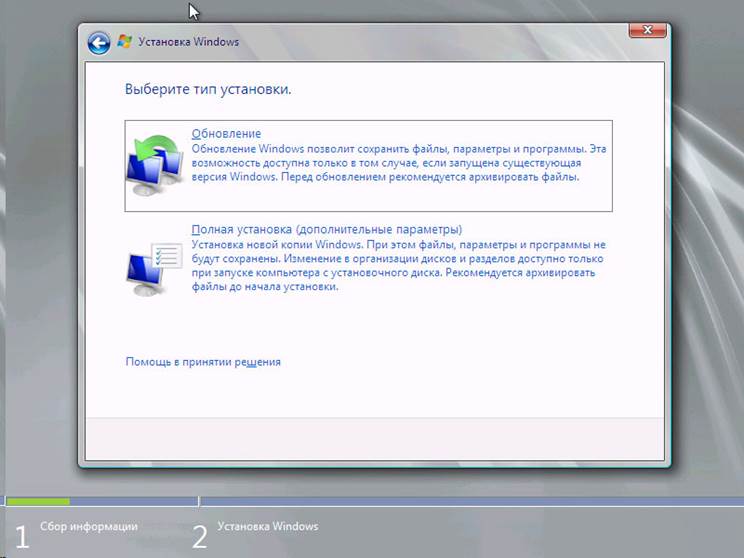 7. Тип установки выбираем – «Полная установка». 8. Теперь нужно выбрать раздел, куда следует установить операционную систему. Перед установкой с системным разделом можно выполнить некоторые операции, список которых можно посмотреть, выбрав пункт «Настройка диска»: