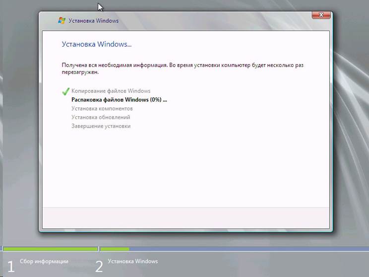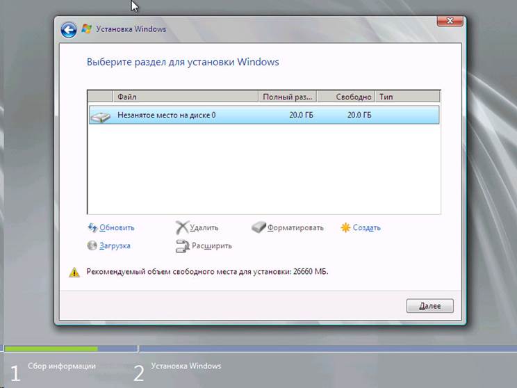 9. После того, как раздел будет подготовлен, следует приступить непосредственно к установке ОС, нажав кнопку «Далее» и дождаться, пока установщик выполнит все необходимые операции.
