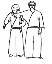 4. Расширьте свою Ки. Человек со слабой Ки чувствует себя неуверенно. Он колеблется, приступая к любому занятию, и в результате всё делает плохо. Если вы хотите быть энергичными и прожить настоящую жизнь, первое, что вы должны сделать, это усилить свою Ки. Существует только один вид Ки, и то, что мы называем "сильной" Ки, это просто сильно расширенная Ки. "Слабая" Ки - это та Ки, которая расширена недостаточно. Поскольку ум движет телом, его работа отражается на теле. Если вы думаете, что вес вашей руки находится снизу, он переместится туда и рука станет неподъёмной. Опыт 7. А напрягает вытянутую руку, стараясь сделать её несгибаемой. Б обеими руками пытается согнуть руку А в локте. Если их силы примерно, у Б не возникнет особых затруднений при сгибании руки А (Рис. 6.7). Мнение о том, что напряжённая рука - это сильная рука, наиболее распространено среди простых людей. С точки зрения последнего опыта, могущество мистера "Земной Шар", демонстрирующего на журнальной обложке рельефные бицепсы, весьма сомнительно. Опыт 8. А вытягивает ту же руку и полностью расслабляется. Он концентрируется на мысли, что энергия его сознания устремляется в его руку и затем, пройдя через пальцы, выходит в безграничное пространство. Б пытается согнуть его руку, но безуспешно (Рис. 6.8). Это пример расширения Ки. Чтобы расширить Ки, вы должны верить в то, что вы делаете это. Другими словами, вы должны использовать свой ум положительно. Звук свободно распространяется в пространстве, распространяется беспрепятственно и свет. Нет никаких причин для того, чтобы ваша умственная энергия не могла вести себя так же. Подобно воде, стремительно извергающейся из пожарного шланга, Ки течёт вперёд, если вы в это верите. Подобная мысль может показаться странной, но это только потому, что Ки невидима.